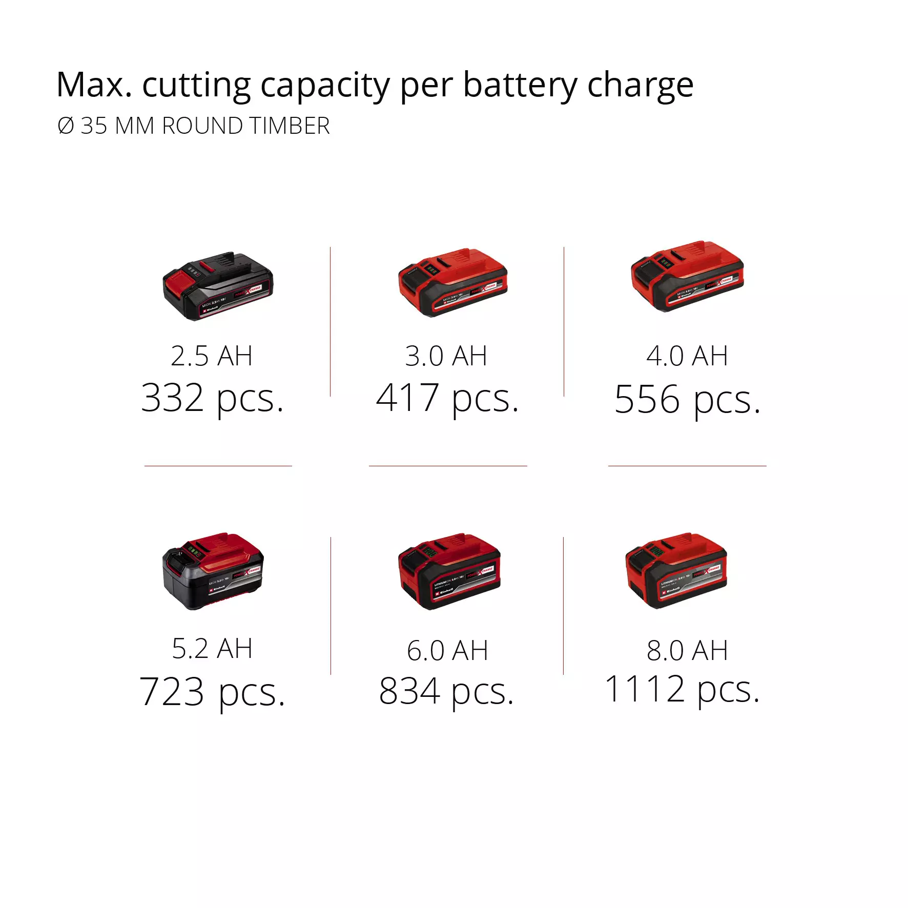 Za najbolje rezultate preporučuje se baterija od 3,0 Ah ili veća. Isporuka ne uključuje baterije, punjače niti sekače, ali se mogu kupiti posebno, npr. u praktičnom startnom setu.