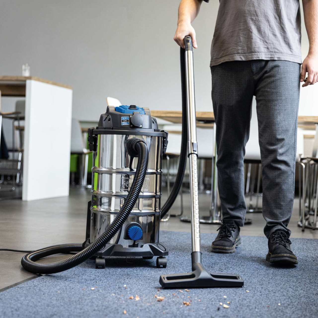 3-u-1 funkcija omogućava mokro usisavanje, suvo usisavanje i izduvavanje, pružajući maksimalnu fleksibilnost u radu. Inox rezervoar zapremine 30 litara otporan je na koroziju, dok odvodni čep omogućava brzo i jednostavno pražnjenje tečnosti.